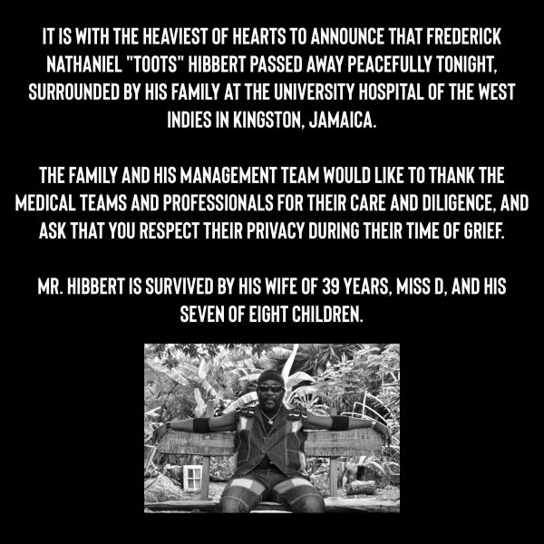 Toots Hibbert Has Passed Away