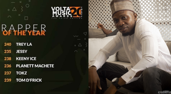 Ghanaian rapper, Trey LA, receives his first nominations at the 3rd edition of the Volta Music Awards.